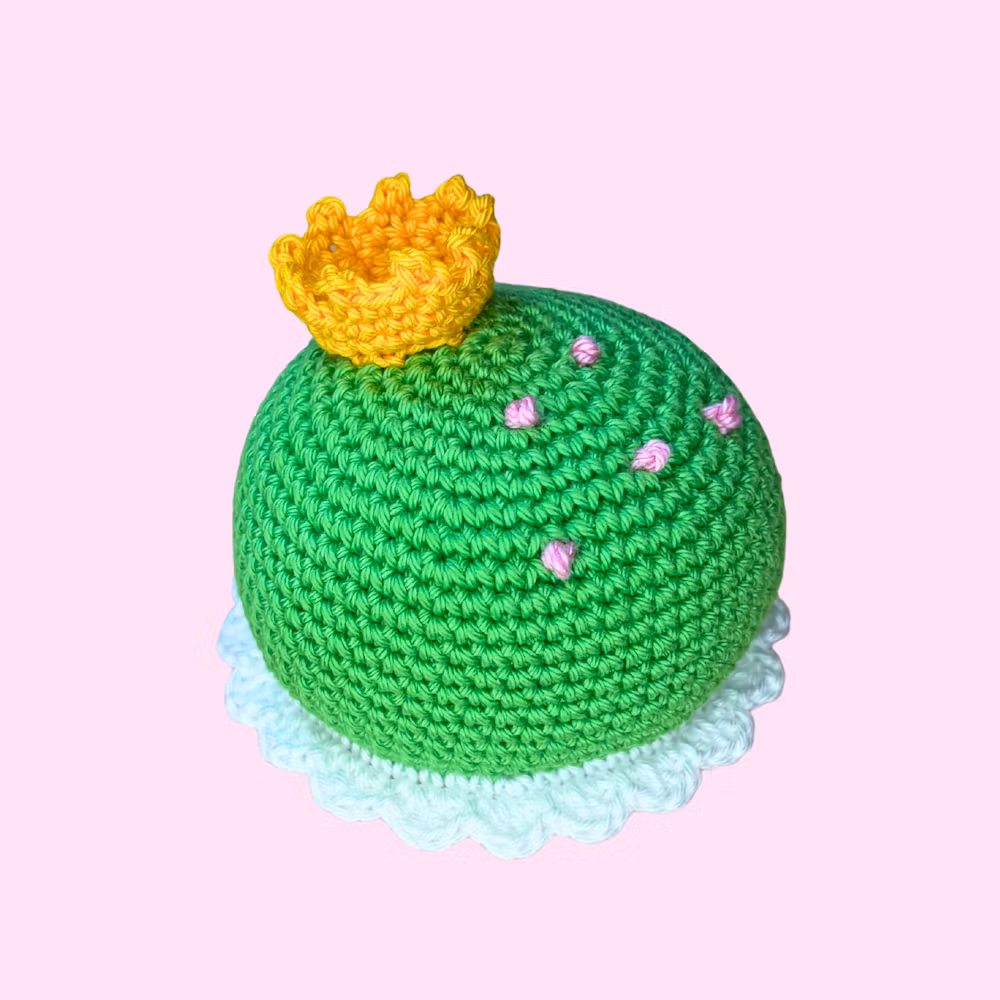 👑 Virkmönster – Prinsesstårta med krona (virkat bakverk)Ett detaljerat virkmönster på en prinsesstårta i miniatyr med en liten krona på toppen. Perfekt för dig